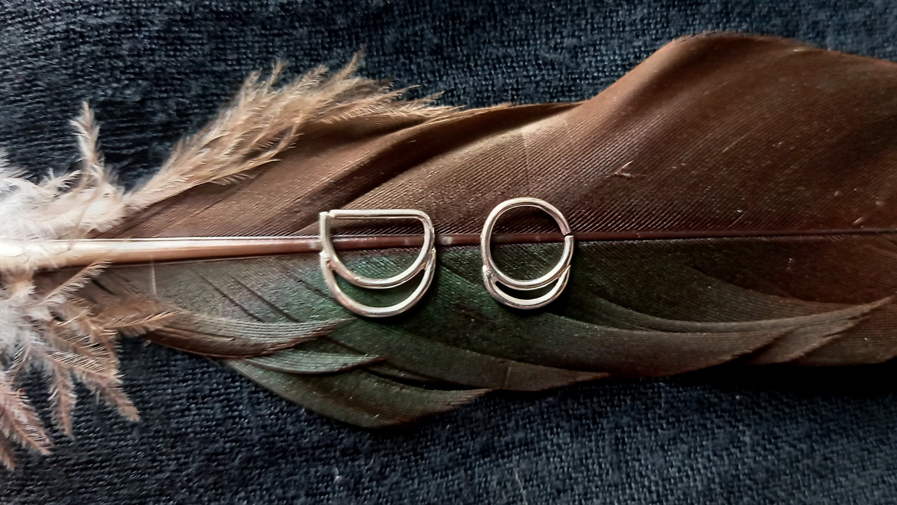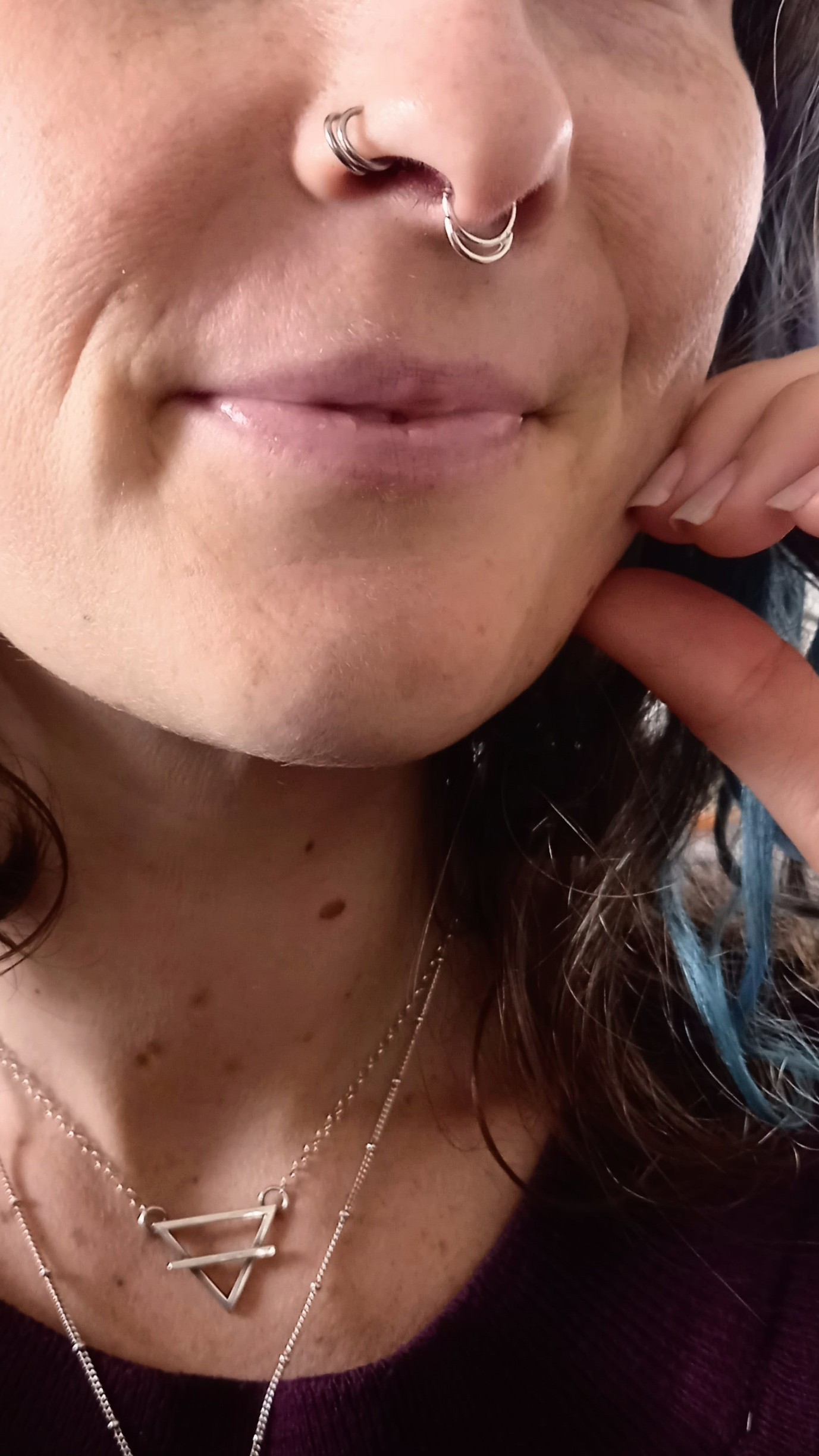 This dainty septum ring is lovingly handmade, like everything else in my collection, from 100% recycled silver. It’s available either as a standard ring or in a D shape. The two loops form the shape of a crescent moon, imbuing your days with lunar magic.