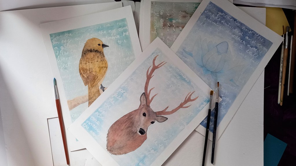 The story of each encounter is detailed in the painting’s background, allowing you to journey onwards with these guides, and allow them to take you wherever your own path might lead.