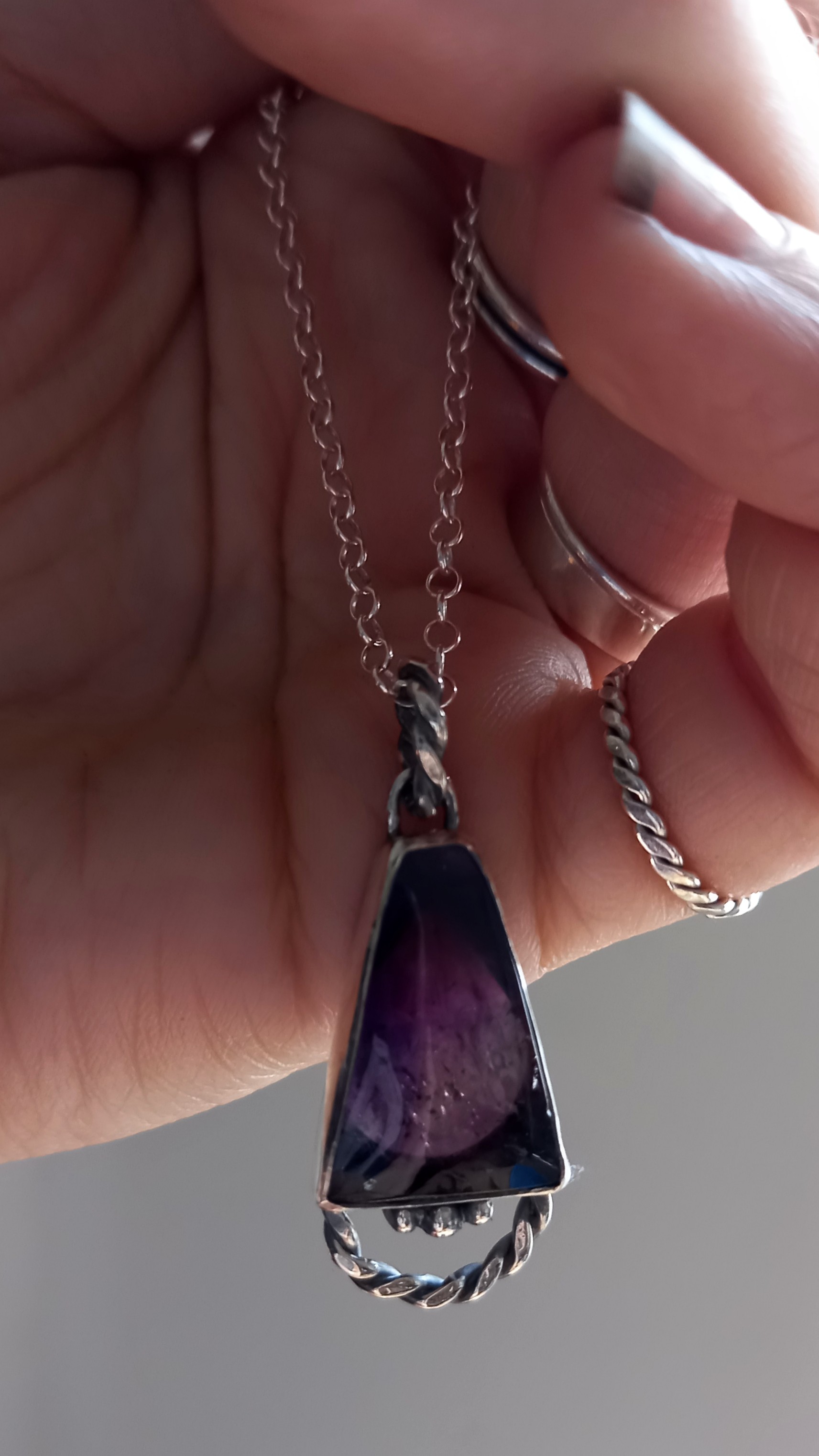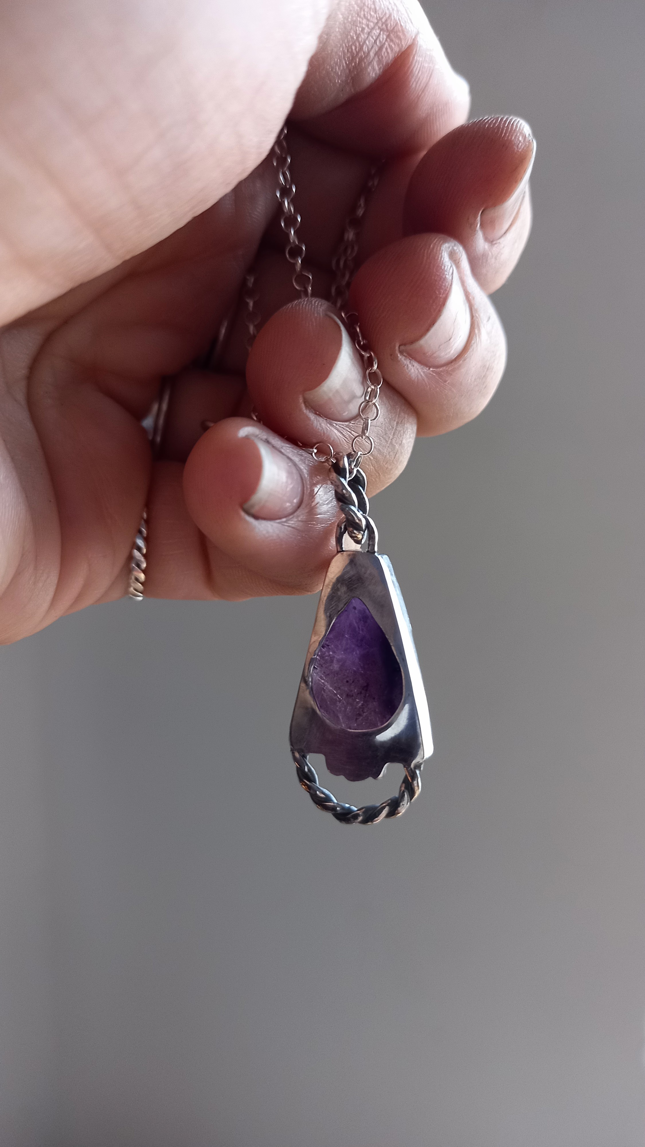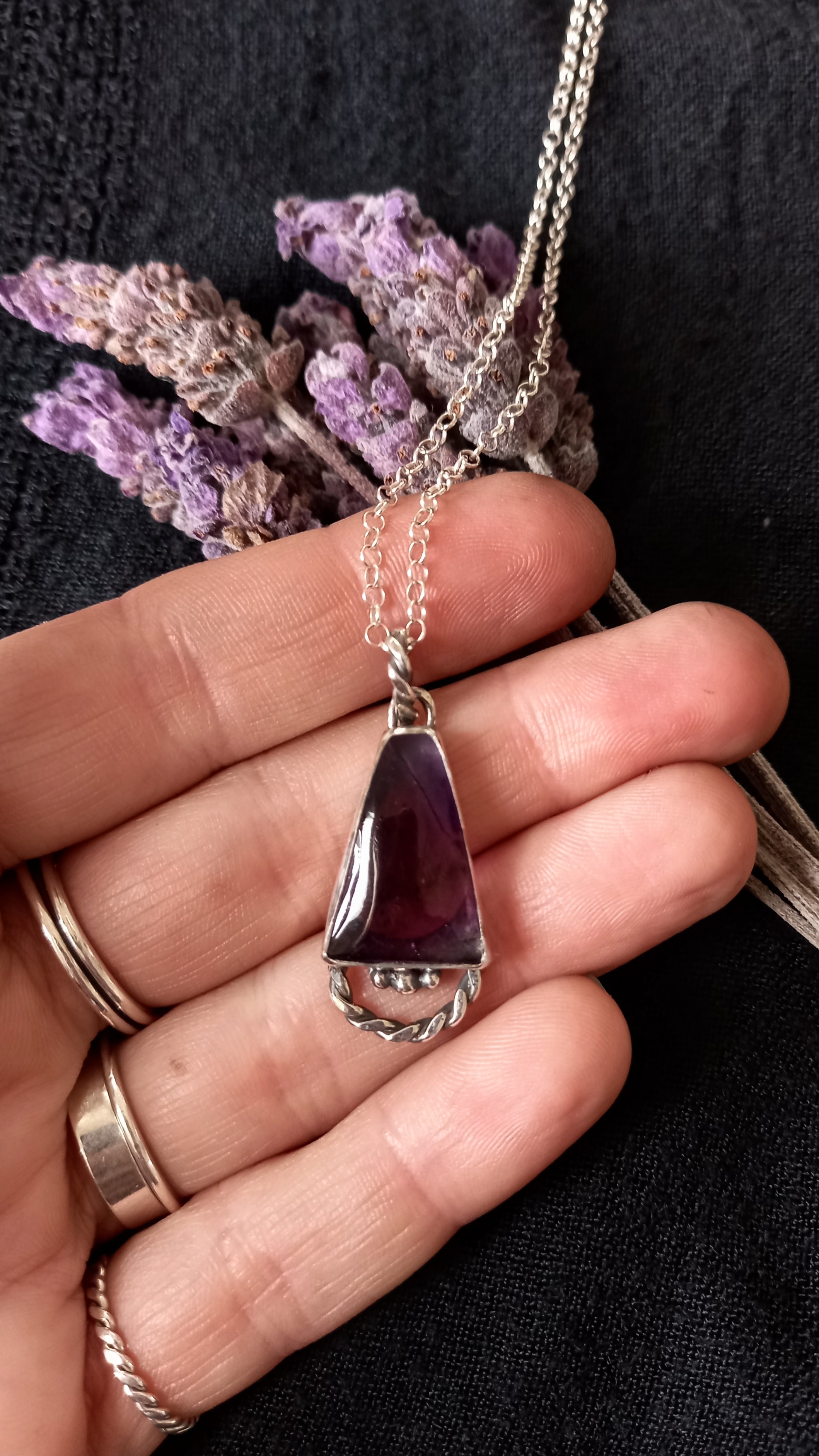 Set with three dainty silver spheres at its base, and a twisted wire bail and loop, the amethyst pendant has been quenched in Full Moon Water, to imbue it with the energy of the moon.
