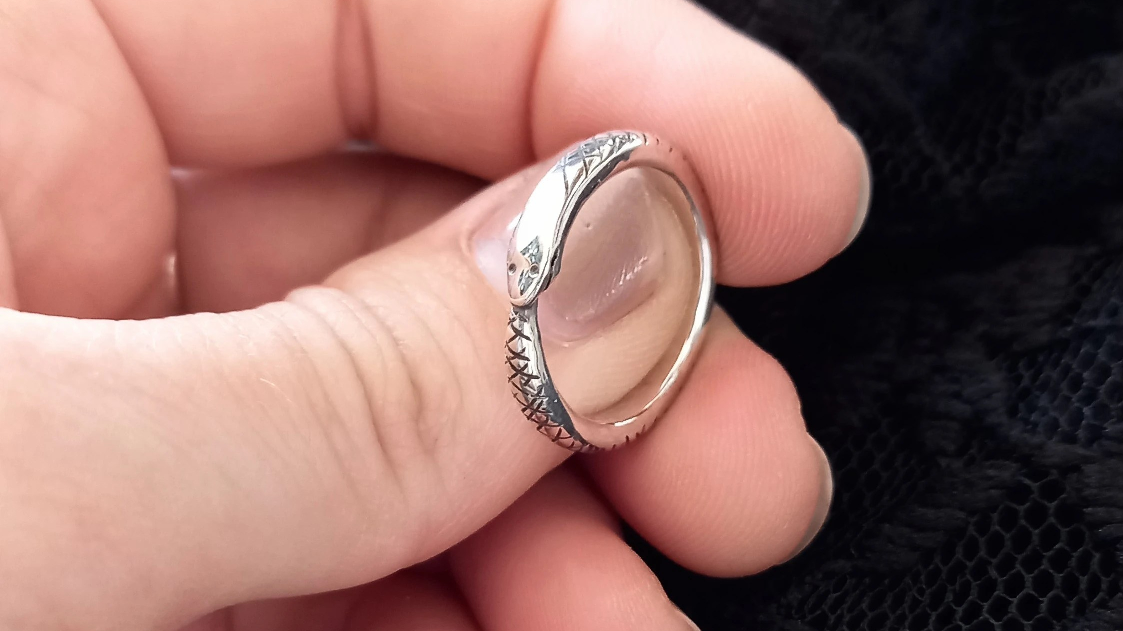 This ouroboros ring is lovingly handmade from recycled sterling silver in my little studio in sunny Portugal.